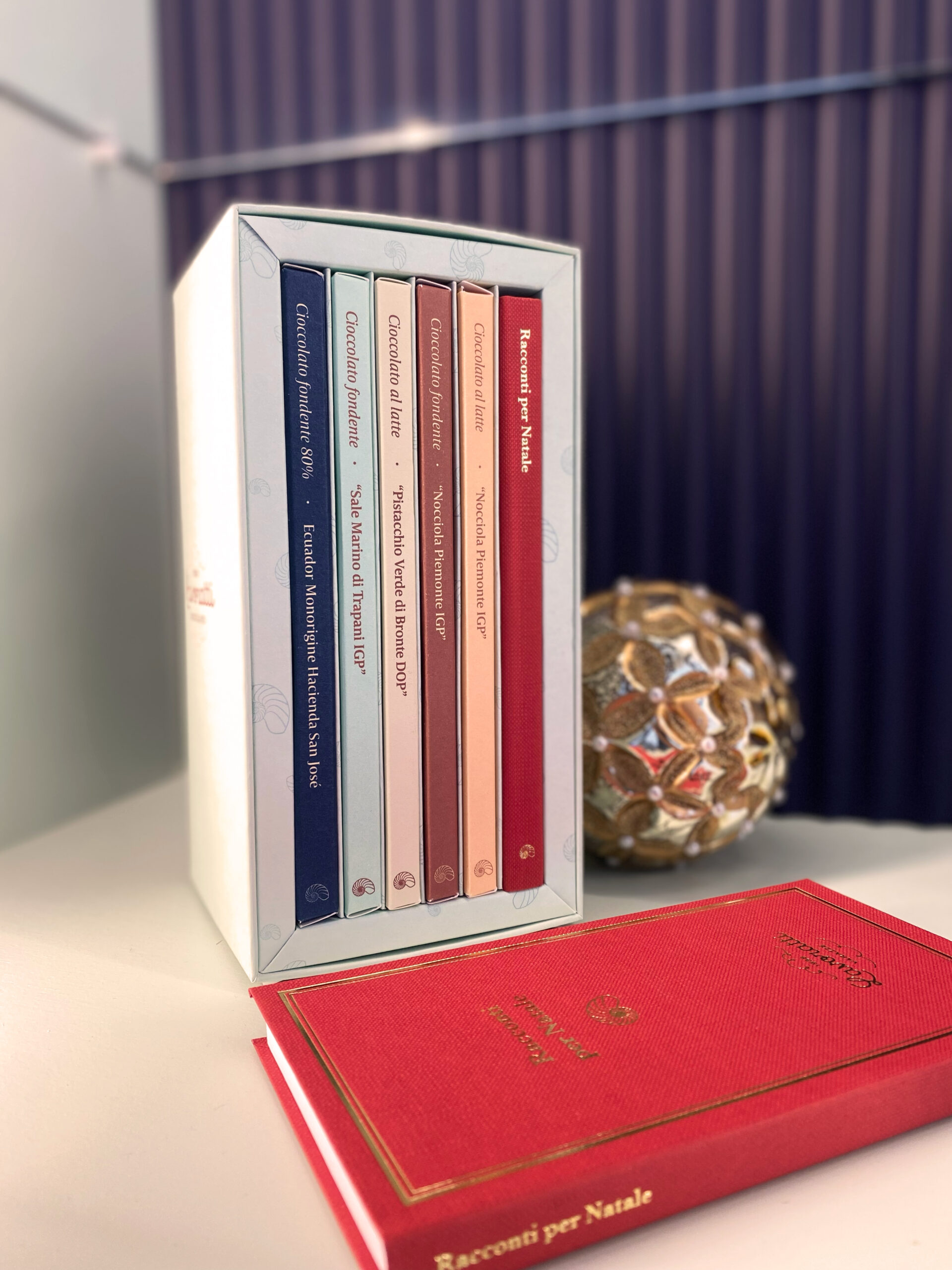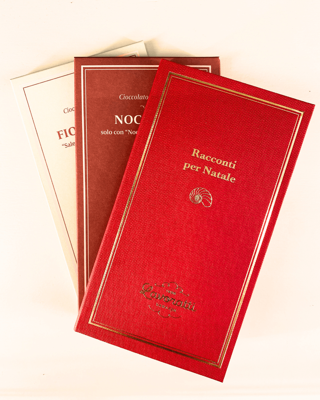 This collection was born from the desire to share with readers a small treasure of rediscovered pages and forgotten words: from the witty, erudite verses of Camillo Sbarbaro to the intense poetry of Mario Novara and Antonia Pozzi; from the visionary tones of Dino Campana to the popular voices of Collodi, Vamba, Trilussa, and Matilde Serao. And—like a game to enjoy under the Christmas tree—we paired five of these authors with our chocolate bars, allowing readers to taste their words through flavor.