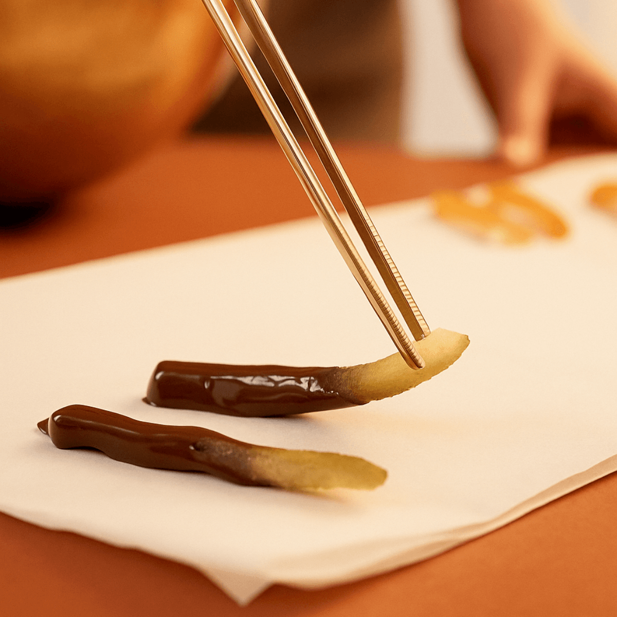 The Chocolate-covered Bergamot Peels enhance the flavors of fresh fruit. In this 150g version, each candied bergamot peel is coated with a layer of single-origin Ecuador dark chocolate: this coating creates an irresistible contrast.