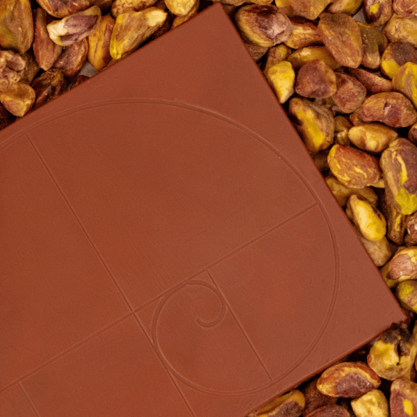Ingredients36% Cocoa, sugar, cocoa butter, cocoa mass, whole milk powder, Pistachio Paste from Bronte DOP (14.4%), emulsifier (non-GMO soy lecithin).