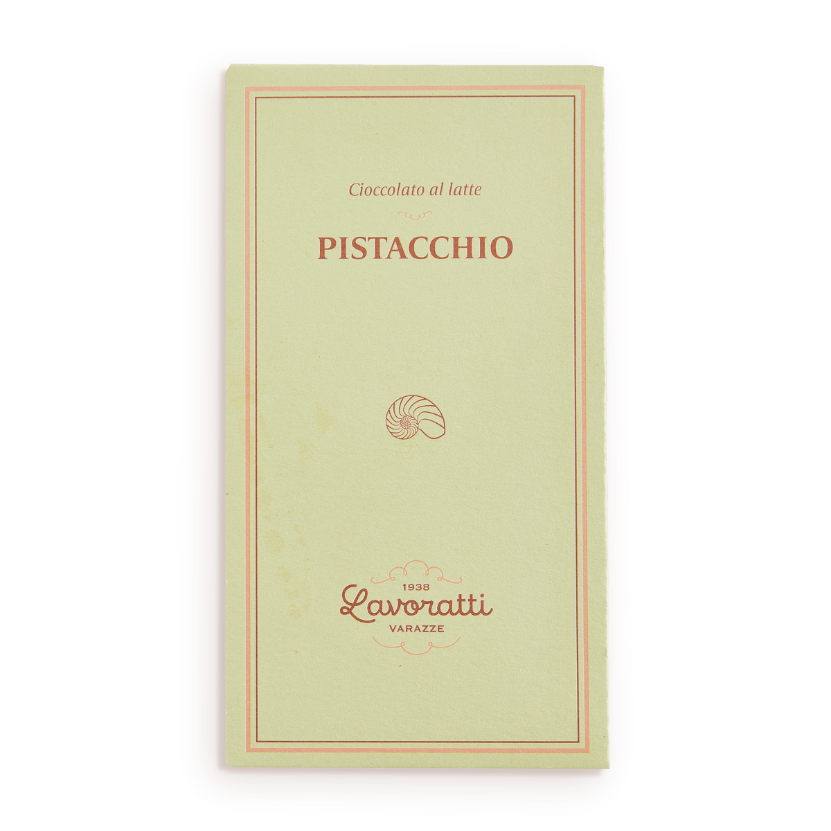 The Milk Chocolate and Pistachio Bar is one of the delicacies from the Lavoratti 1938 chocolate book collection. This chocolate bar contains a creamy heart of Bronte DOP Green Pistachio paste, a rare and precious ingredient, known as “green gold” for its rich flavor and its deep connection to the territory.