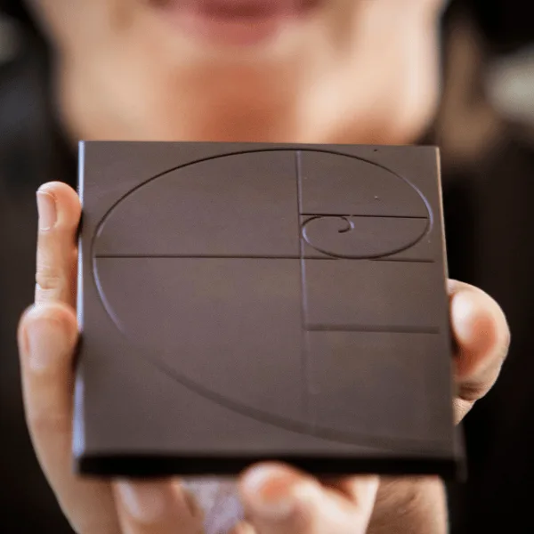 Le forme delle nostre tavolette e delle nostre praline seguono la regola della sezione aurea, per rendere omaggio alla perfezione del cioccolato.